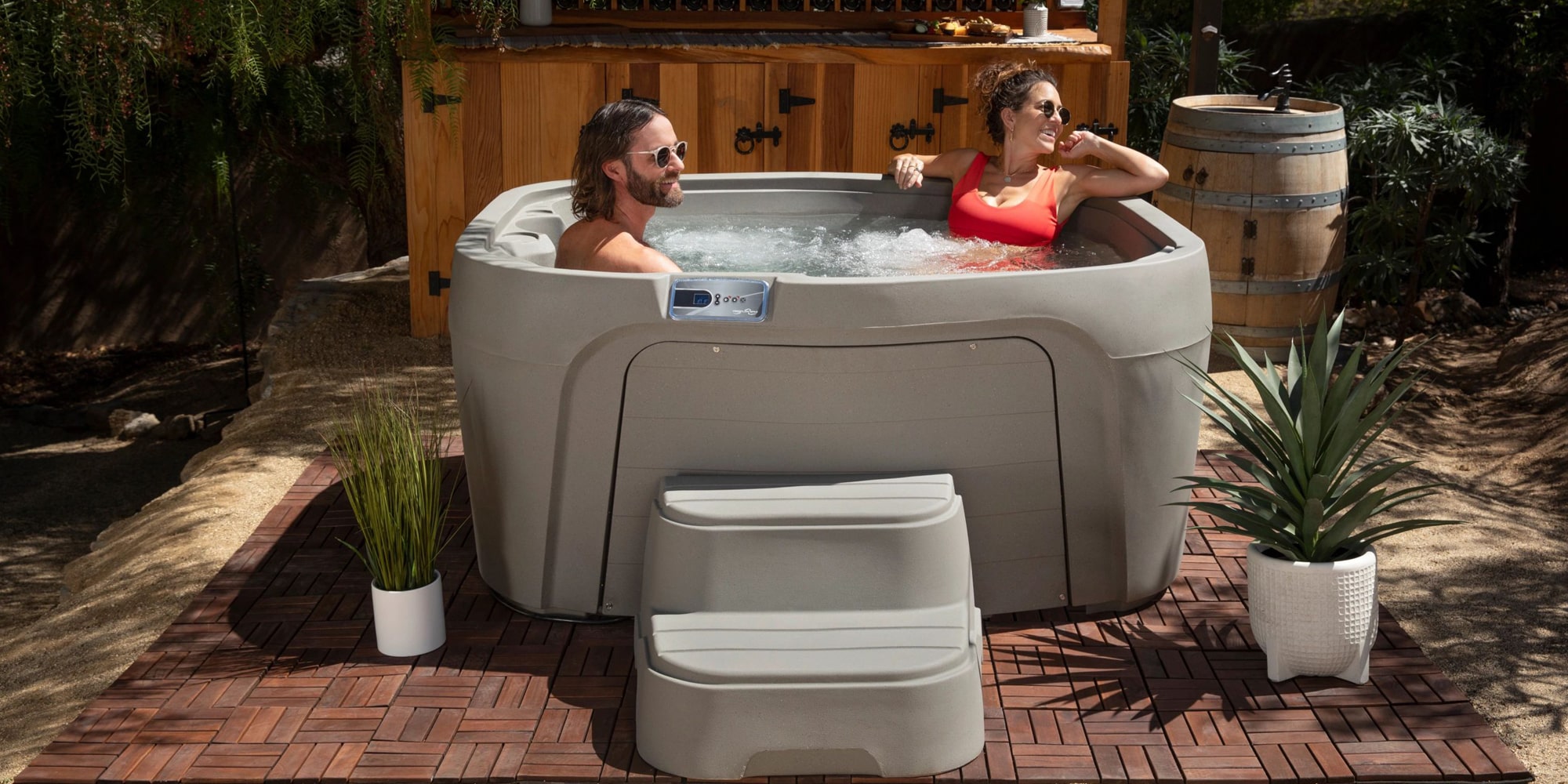 The Straight Step makes entering and exiting the spa safe and easy. Straight edge lines up perfectly with your Freeflow® Spas hot tub.