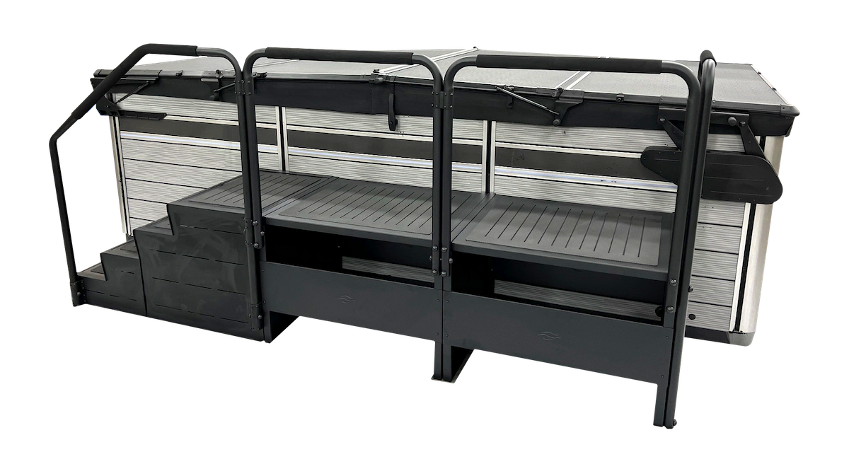 A solution that offers a simple and attractive solution for your customers to operate their cover and access their swim spa easily. The ModDeck is a new addition to our modular step series, allowing various configurations and expansions, making it a perfect fit for any swim spa setting.