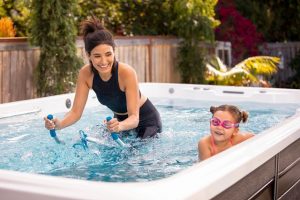The versatility of a swim spa is also great for the whole family. It can become the centerpiece of weekend entertaining for the kids, the place older kids retreat to after soccer, football, or other sports they participate in. If you have avid swimmers in the family, it gives you a chance to fulfill the urge for a dip in a “pool” on the spur of the moment.
