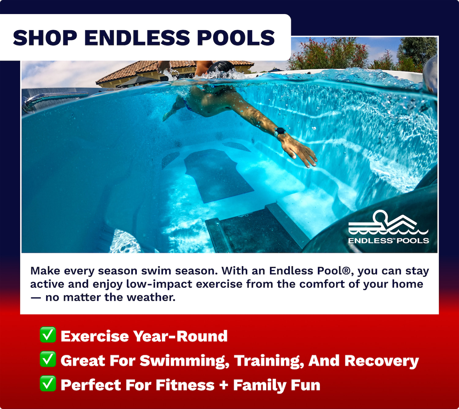 • Swim year round in an Endless Pool