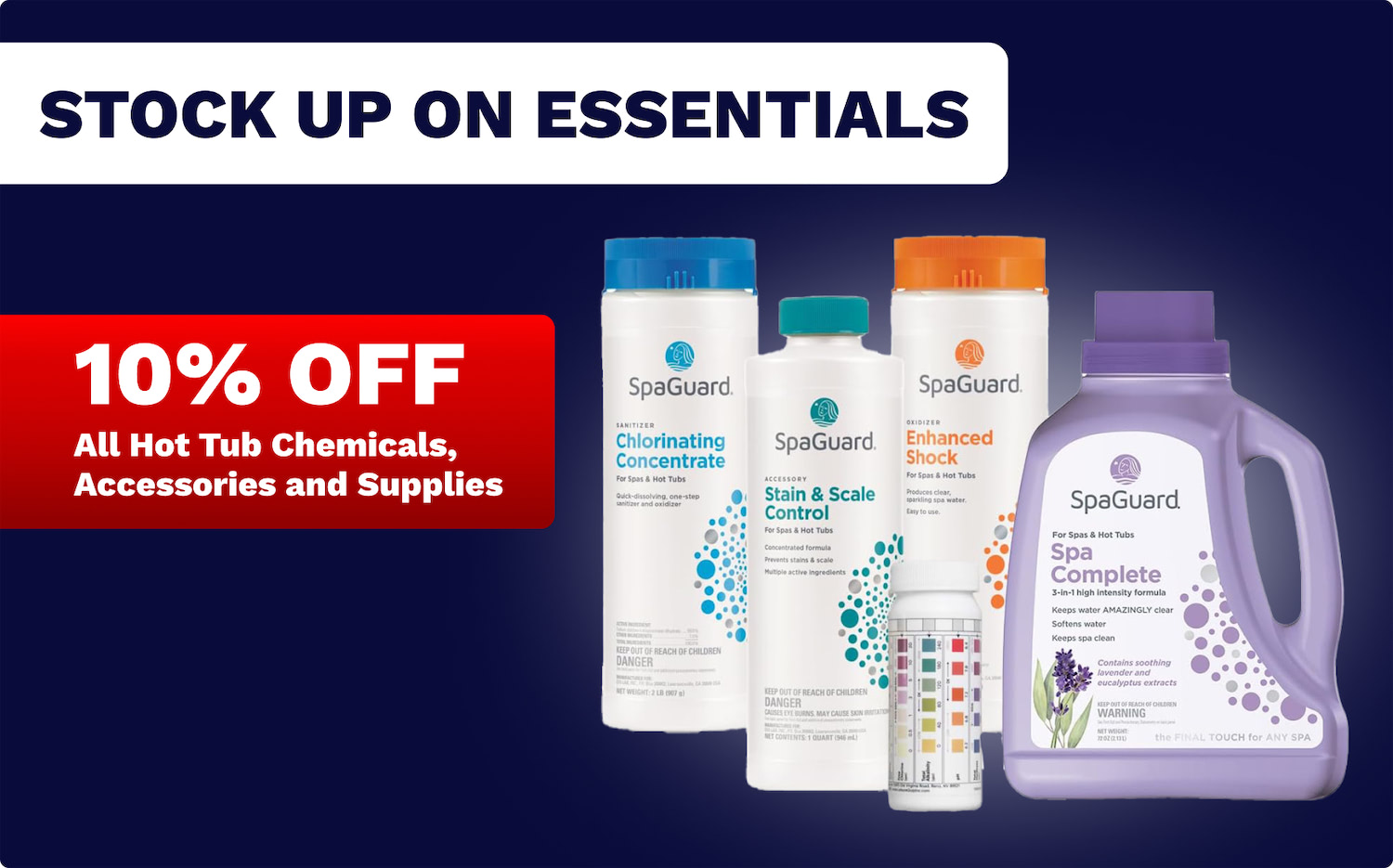 • 10% OFF All Hot Tub Chemicals, Accessories and Supplies